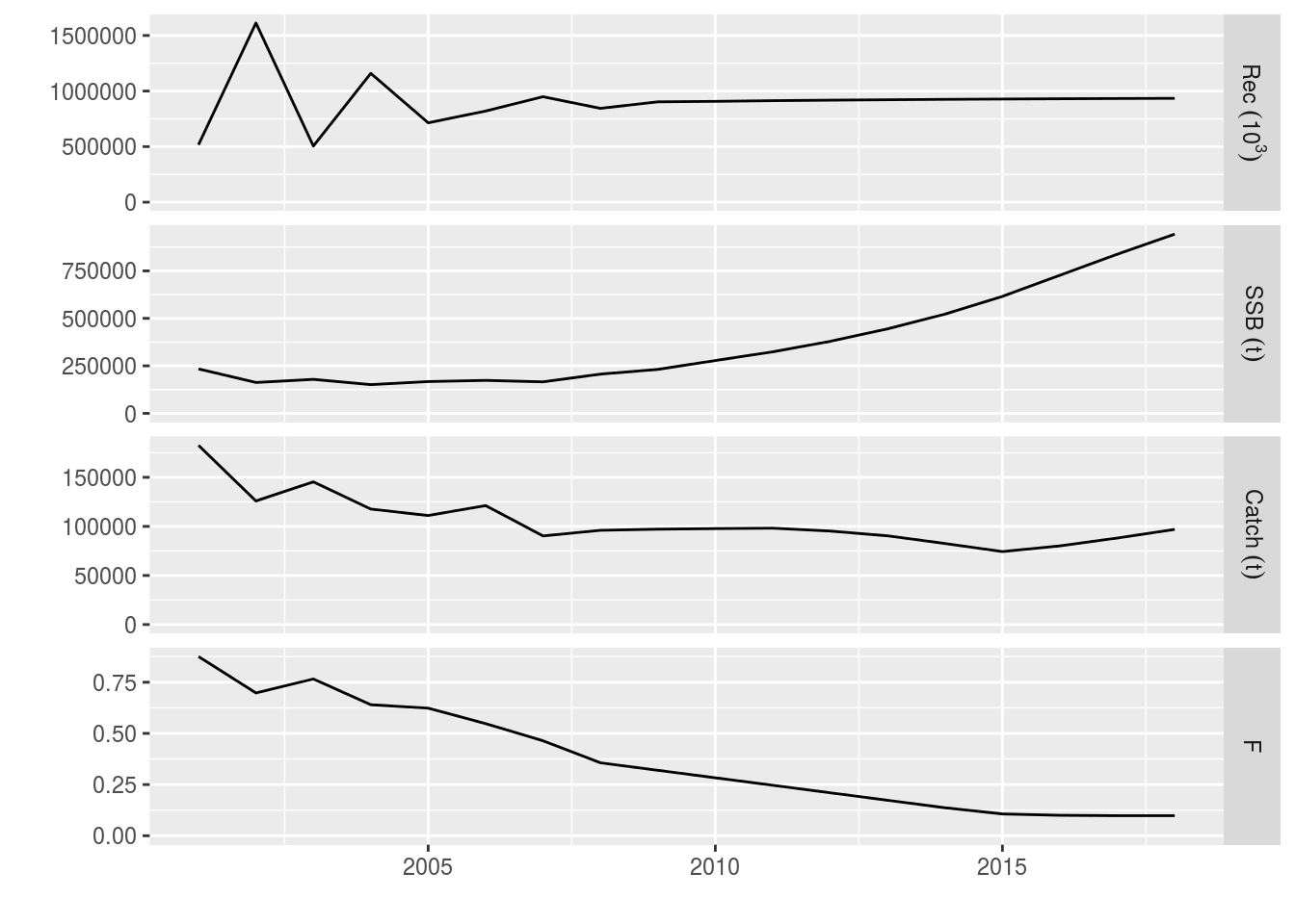 plot(window(ple4_catch_iters, start = 2001, end = 2018))